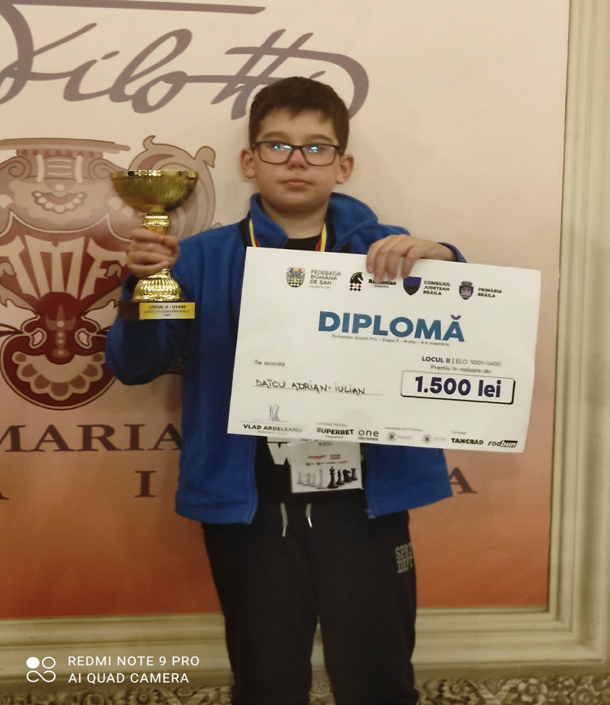 - Locul 1 în Grand Prix România – Brăila 2022, categoria Elo 1400-1600
